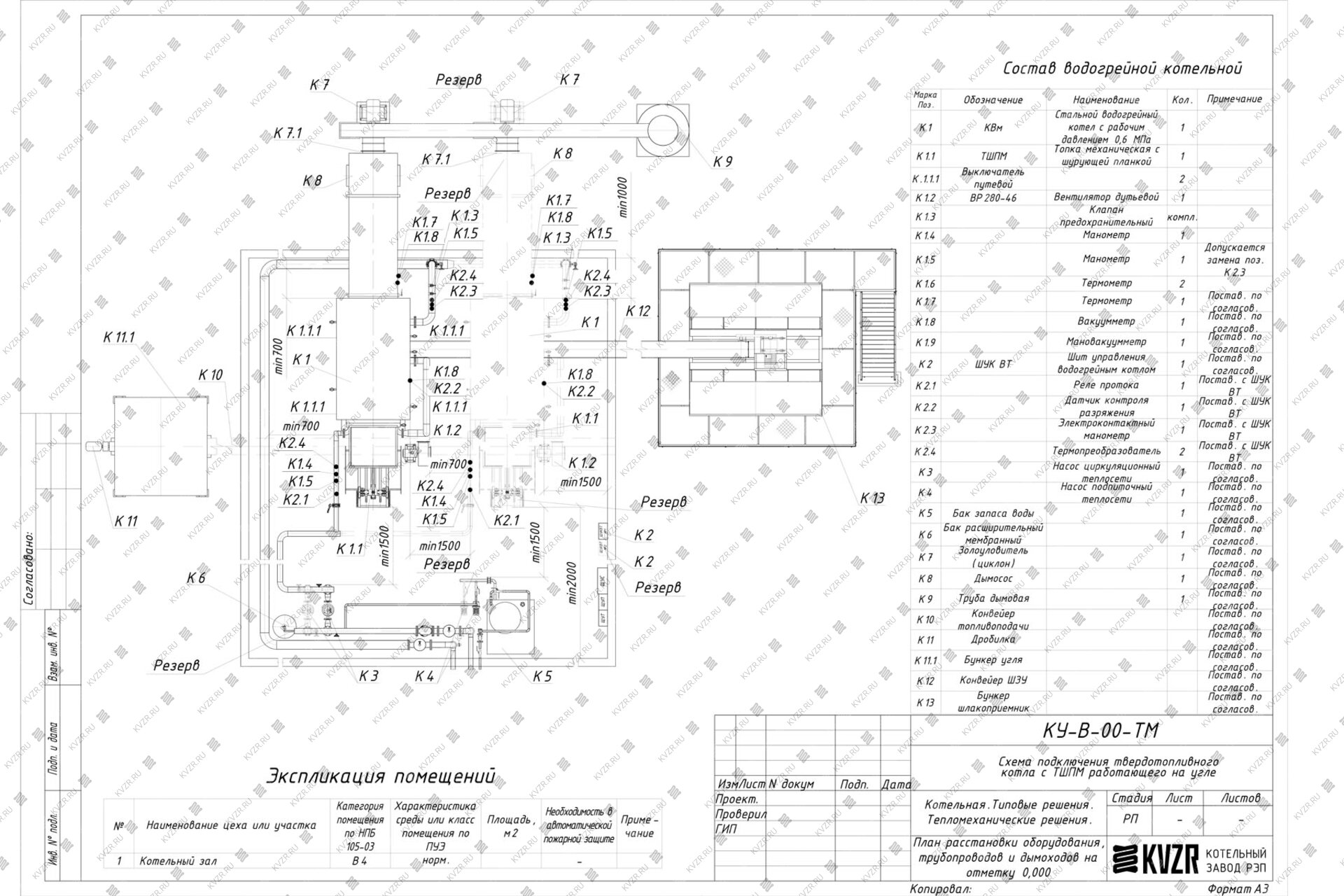 Для эффективной и надежной работы котла КВм-1,86 с ТШПМ в вашей котельной вам потребуется дополнительное оборудование - автоматика ЩУК, дымосос, насос сетевой и подпиточный, золоуловитель (по желанию), транспортеры, газоходы и переходники для газового тракта, дымовая труба. Мы предлагаем рассмотреть типовые варианты комплектации.